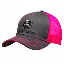Sivá/jasno ružová sieťovaná šiltovka John Deere s vyšívaným logom a nastaviteľným zapínaním.